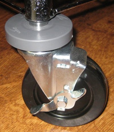Stability is provided by 5" wheels (1 ΒΌ" face) and all wheels swivel so you may change directions very easily. Each wheel has its own brake so that when they are set the Chairiot will not slip out from under you while sitting or standing. The Chairiot will support up to 250 pounds.